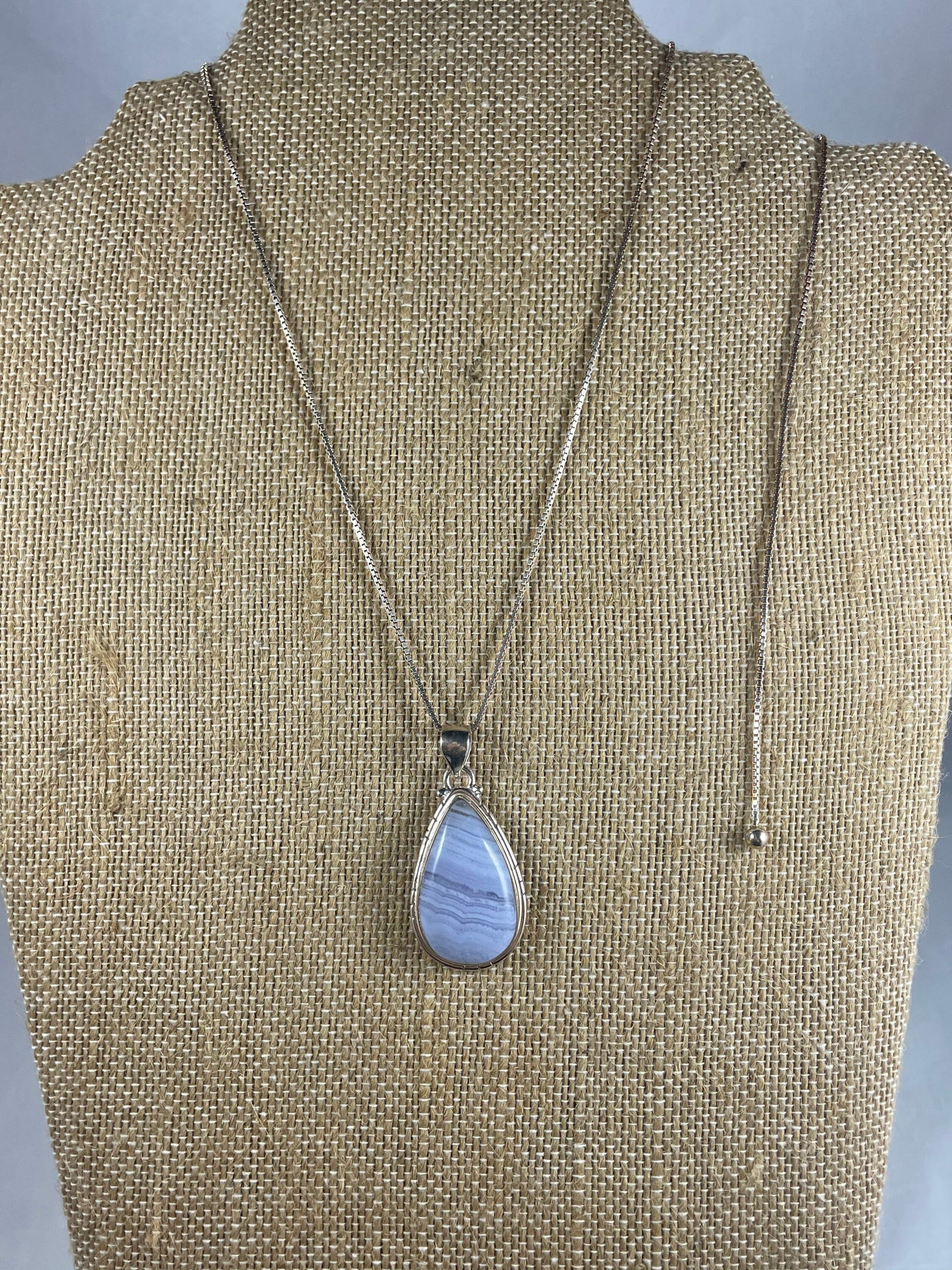 Blue Lace Agate in a Sterling Silver Pendant
